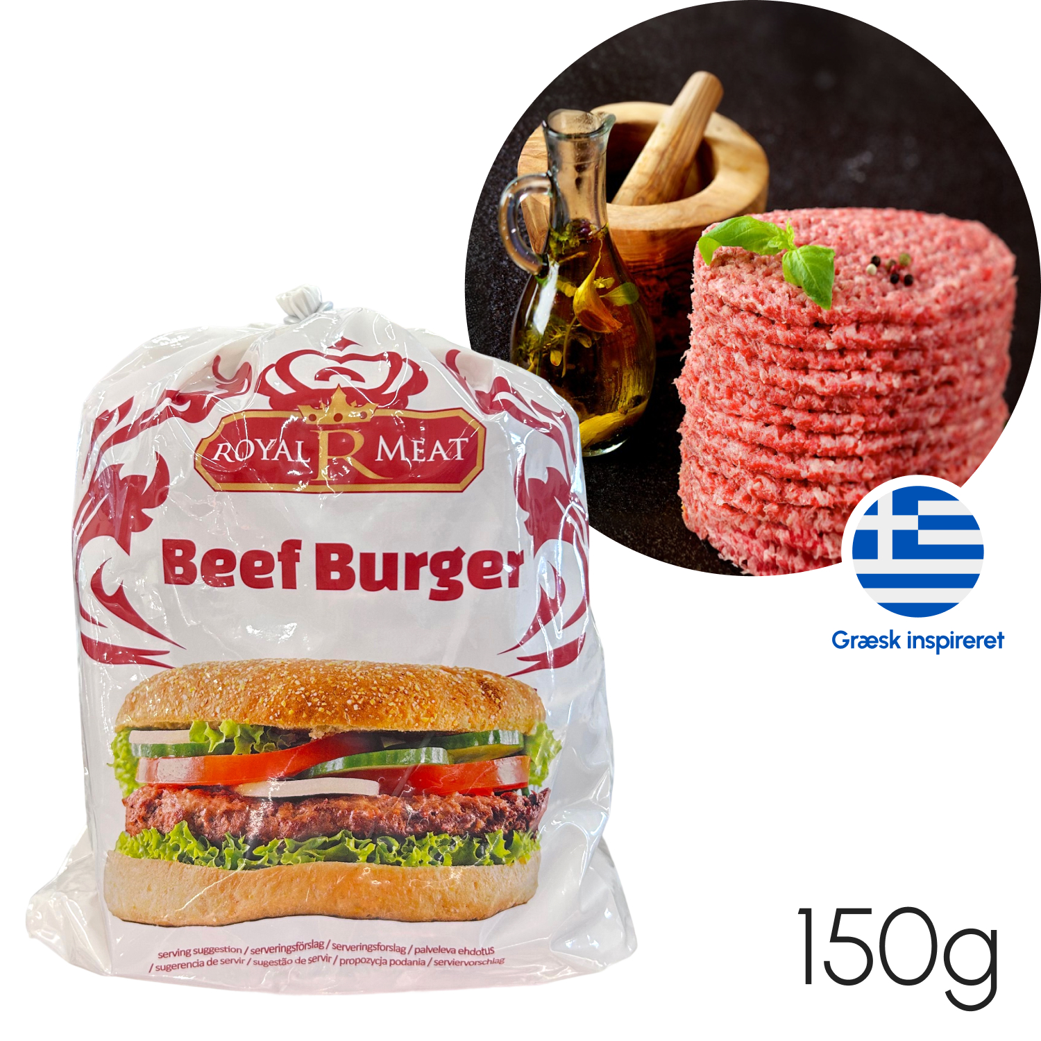 Græsk burger, oksekød 150 g.