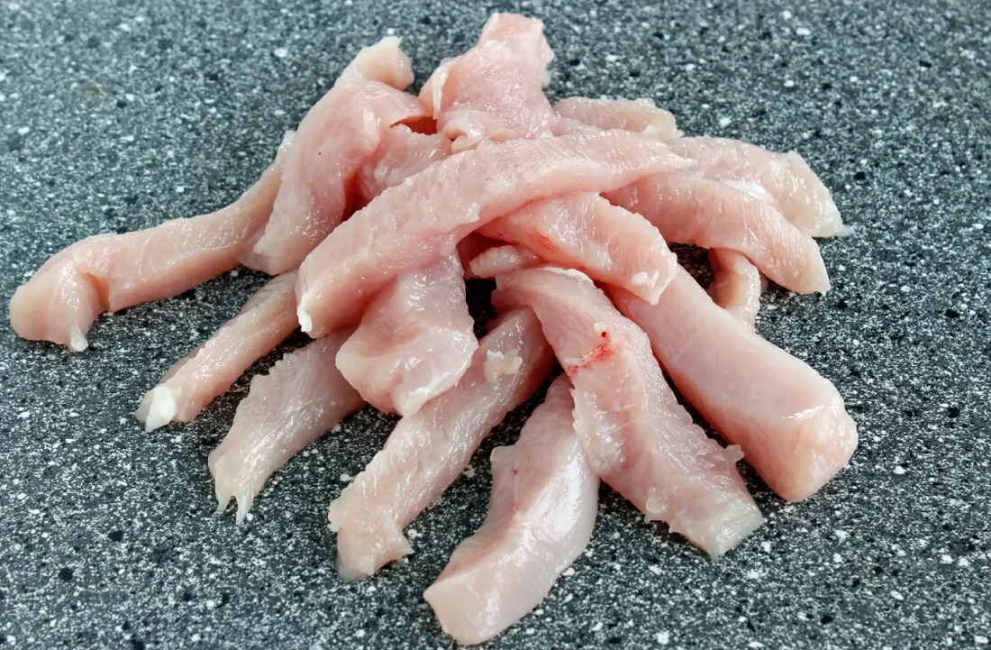Kyllingestrimler af lårkød rå