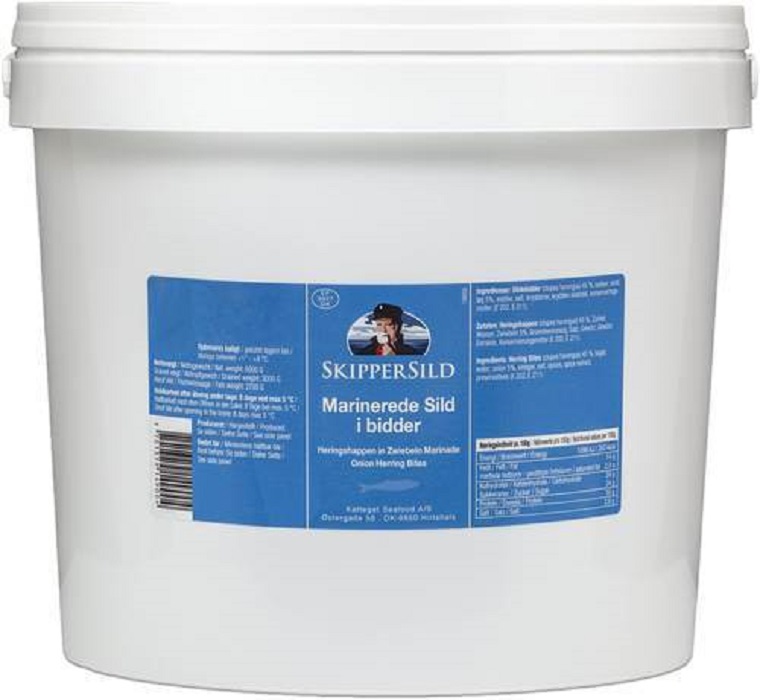 13229 , HIRTSHALS SEAFOOD A/S Danmark 6000 Gram 6000 g 6600 g 3000 g SILDEBIDDER (clupea harengus) 45%, sukker, vand, løg 5%, eddike, salt, krydderier, krydderi ekstrakt, konserveringsmidler (E202, E211).